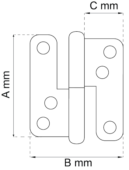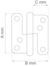 Ytfinish Elzink Innehåll Tappdiameter 9 mm Typ Gångjärn höger Enhet 2/5 SB Mått A (mm) 110 Mått B (mm) 98 Mått C (mm) 44