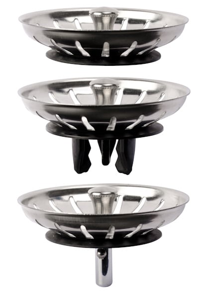 Universal silkorg. Genom att kombinera tillbehören till silkorgen på olika sätt passar den samtliga fabrikat av diskbänkar med så kallad korgventil (där man har en rostfri propp med packning).