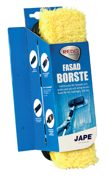 Redo Fasadborste. Tvättborste med plaststomme. Tvättborste med plaststomme (250 x 60 mm) och genomspolning. Försedd med gummikantskydd. Borstlängd: 60 mm. Gul syntetborst, PVC. Passar endast med Redo teleskopskaft. Storlek: 250 x 60 mm. Egenskaper: För genomspolning, trapetsgänga, försedd med gummiskydd. Artikelinfo: Plaststomme, syntetborst, borstlängd 60 mm. Passar med: Redo Teleskopskaft, Redo Skaft 1,4 m, Redo Miniskaft. Genomspolning. Kantskydd av gummi. Kan hålla upp till 0,15 liter vätska.
