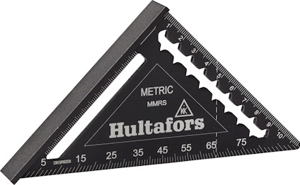 Du kan använda den för exakta 45° och 90° markeringar. Den kan även användas som gradskiva, för att enkelt kunna mäta och markera andra vinklar. Dessutom är dess tjocka och robusta kant användbar som guide för cirkelsåg, för 45° och 90° snitt, och med lite skicklighet eller en tving även för andra vinklar. Den har också ritskåror som kan användas för att rita en linje parallellt med en kant, antingen genom att rita med en penna eller när du arbetar med gipsskivor, genom att skära direkt med en kniv. Och naturligtvis har medium och large originalskalorna för att kapa olika typer av taksparrar, som exempelvis grad- och kälsparrar.