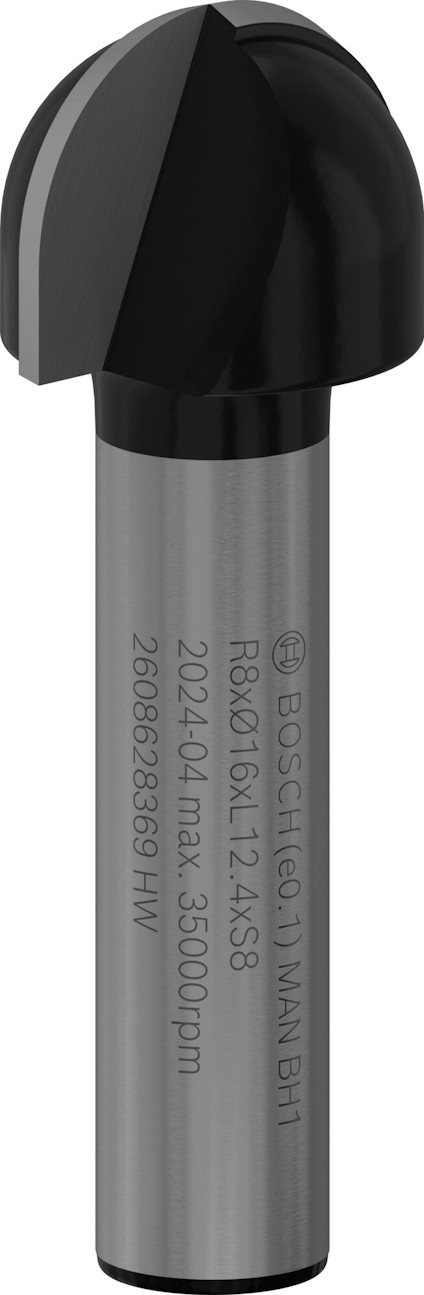 Hålkälsfräs, 8 mm, R1 8 mm, D 16 mm, L 12,4 mm, G 45 mm