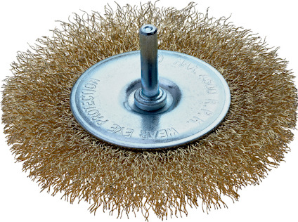 Cirkulärborste Vågig Germaflex. Cirkulär stålborste vågig för borrmaskin med 6 mm hållare. Effektiv för att ta bort grader och utstickande kanter på metall. Borttagning av färg och lack. Lämplig för avlägsnande av gamla beläggningar på ytor som me Läs mer