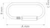Snabblänk av stål respektive syrafast rostfritt 316-stål med gänga. Angivna värden för rekommenderad maxvikt är beräknade och garanteras ej. A=längd, B=bredd, C=tjocklek. Läs mer