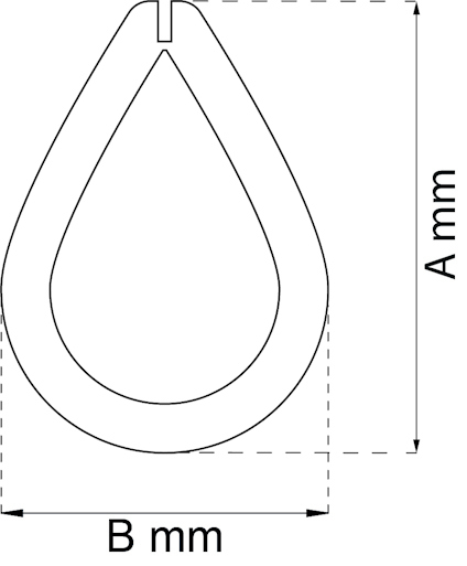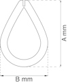 Ögla av stål respektive syrafast rostfritt 316-stål. A=längd, B=bredd.