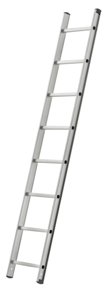 Robust aluminiumstege avsedd för fast montering på tak. Genom att kombinera stegar med skarvsatser uppnås önskad längd. Halkskyddade stegpinnar med 30 mm djup.